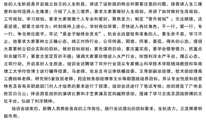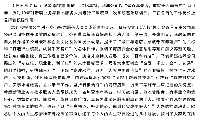 利洋公司以“做百年老店成就千萬養(yǎng)殖戶”為目標 培訓新聘業(yè)務與技術服務人員