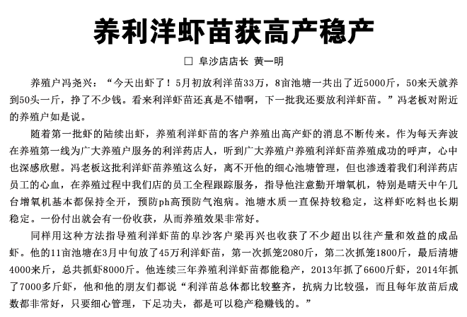 養(yǎng)利洋蝦苗獲高產(chǎn)穩(wěn)產(chǎn)