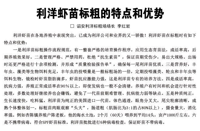 利洋蝦苗標(biāo)粗的特點(diǎn)和優(yōu)勢(shì)