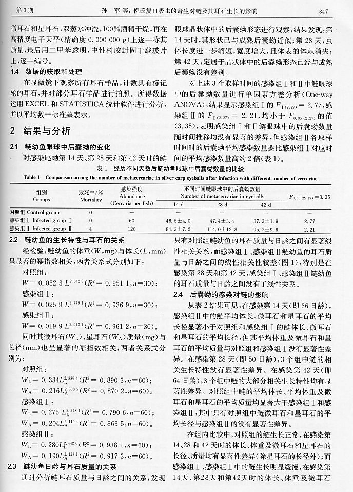 倪氏復(fù)口吸蟲的寄生對(duì)鰱及其耳石生長(zhǎng)的影響2
