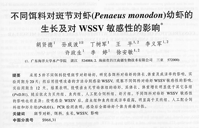 不同餌料對斑節(jié)對蝦幼蝦的生長及對WSSV敏感性的影響