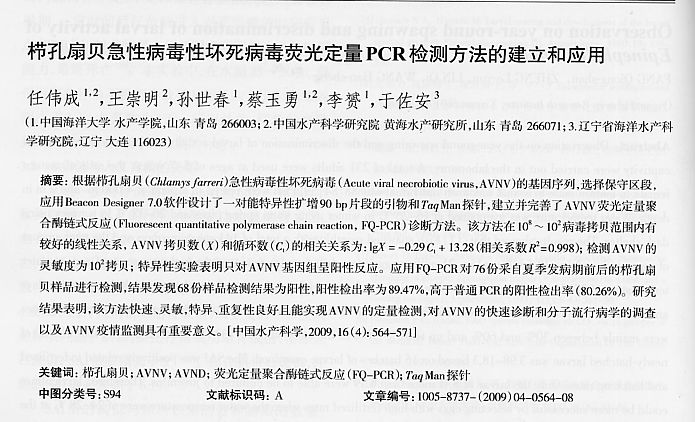 櫛孔扇貝急性病毒壞死病毒熒光定量PCR檢測方法的建立和應(yīng)用