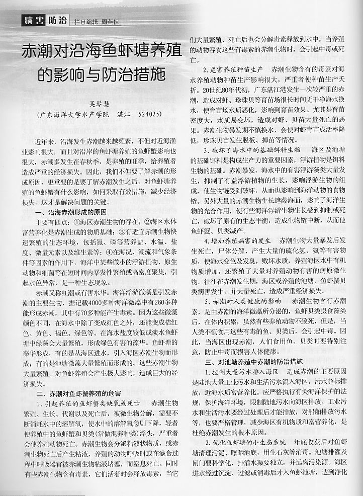 赤潮對(duì)沿海魚蝦塘養(yǎng)殖的影響與防治措施1
