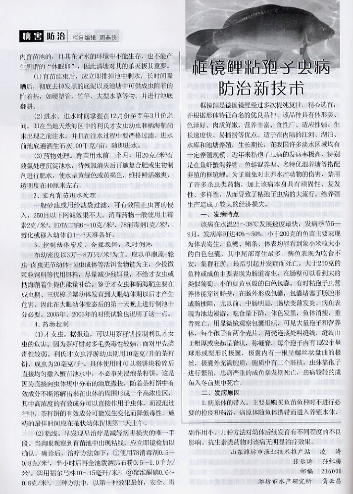 框鏡鯉粘孢子蟲病防治新技術(shù)1