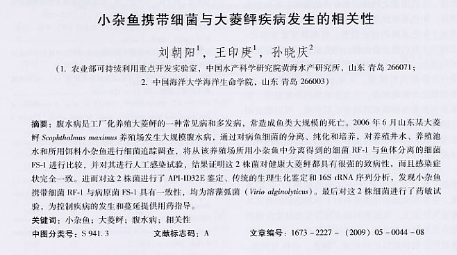 小雜魚攜帶細(xì)菌與大菱鲆疾病發(fā)生的相關(guān)性