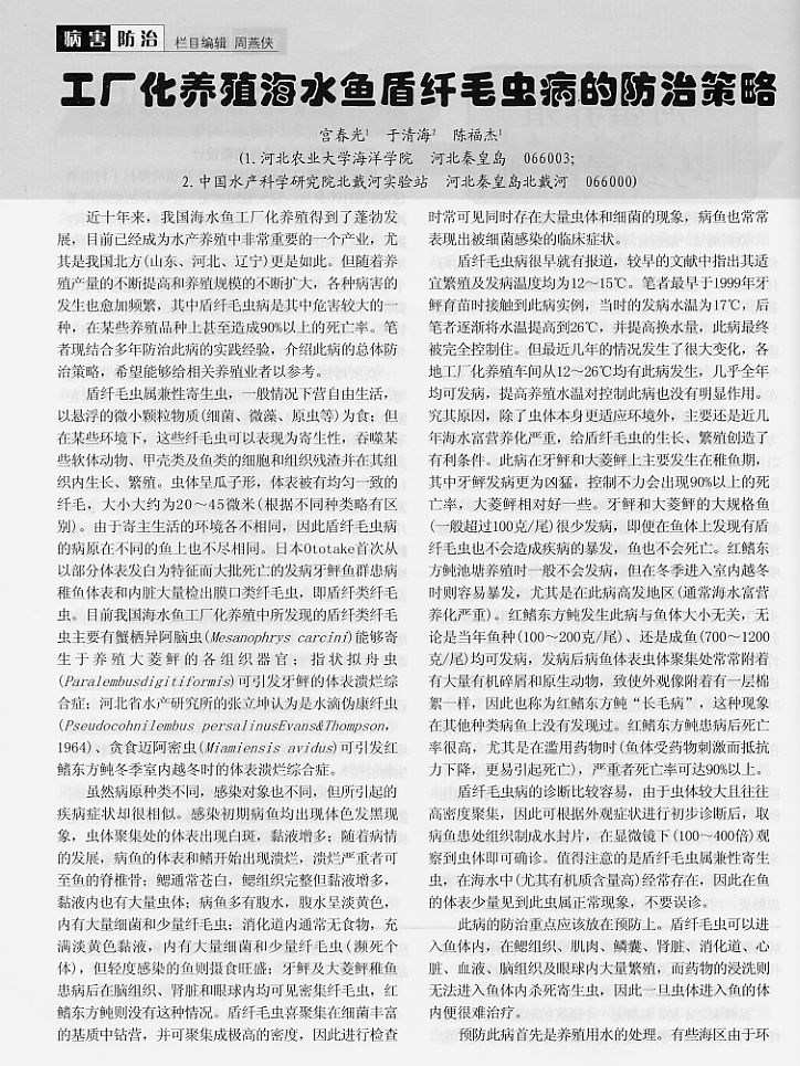 工廠化養(yǎng)殖海水魚(yú)盾纖毛蟲(chóng)病的防治策略1