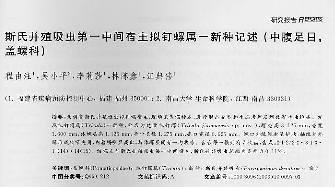 斯氏并殖吸蟲第一中間宿主擬釘螺屬一新種記述(中腹足目,蓋螺科)