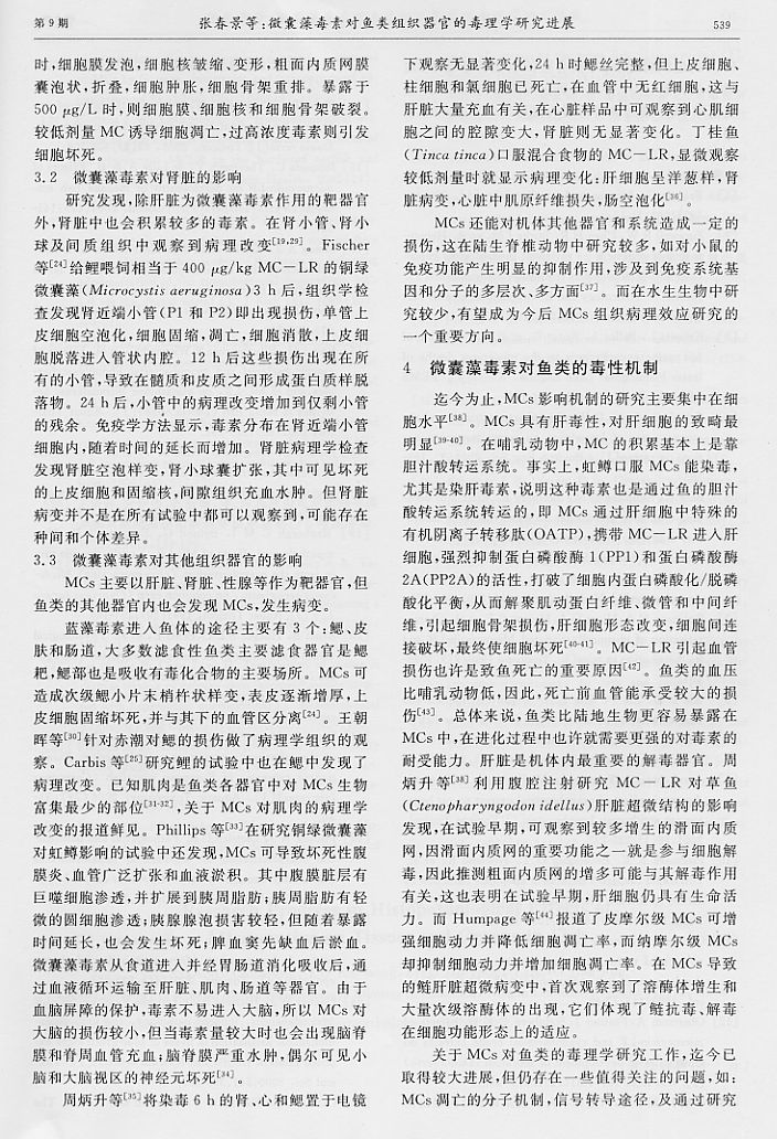 微囊藻毒素對魚類組織器官的毒理學研究進展3