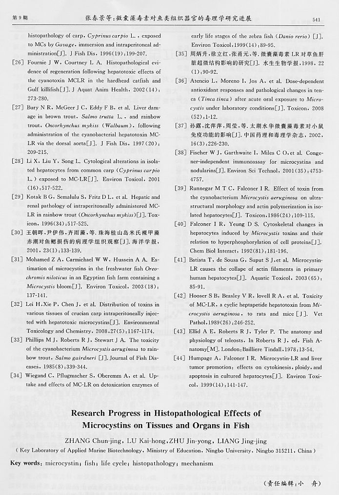 微囊藻毒素對魚類組織器官的毒理學(xué)研究進(jìn)展5