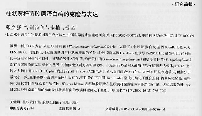 柱狀黃桿菌膠原蛋白酶的克隆與表達