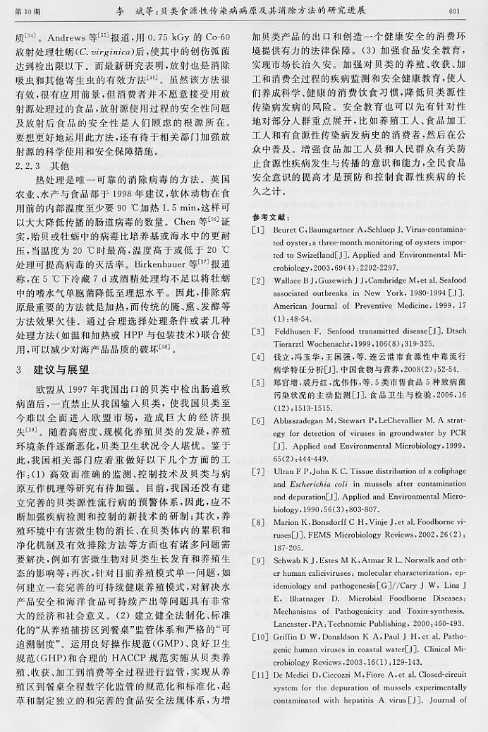 貝類食源性傳染病病源及其消除方法的研究進(jìn)展4