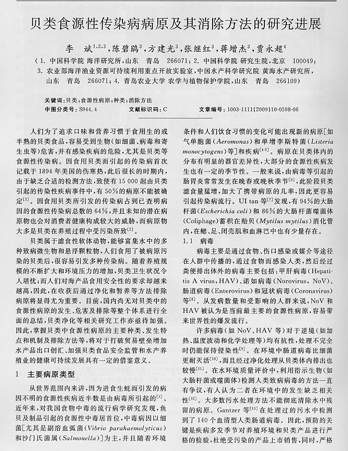 貝類食源性傳染病病源及其消除方法的研究進展1