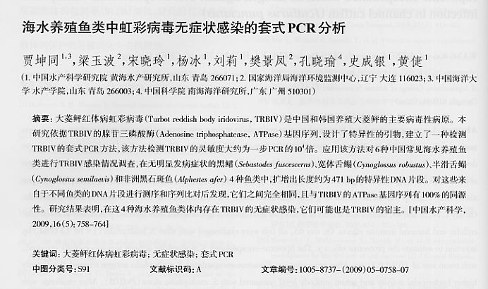 海水養(yǎng)殖魚類中虹彩病毒無(wú)癥狀感染的套式PCR分析