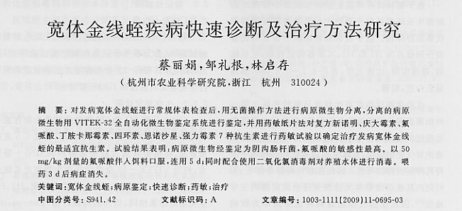 寬體金線蛭疾病快速診斷及治療方法研究