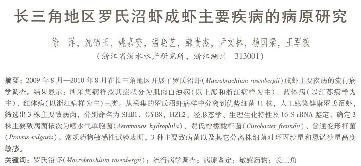 長三角地區(qū)羅氏沼蝦成蝦主要疾病的病原研究
