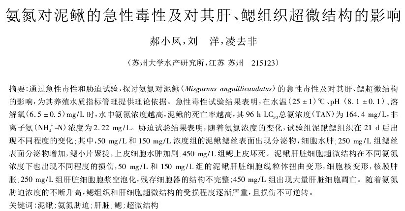 氨氮對泥鰍的急性毒性及對其肝、鰓組織超微結(jié)構(gòu)的影響