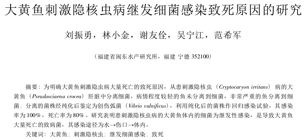 大黃魚刺激隱核蟲病繼發(fā)細菌感染致死原因的研究