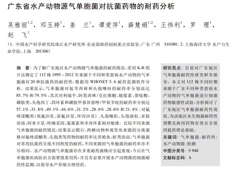 廣東省水產(chǎn)動物源氣單胞菌對抗菌藥物的耐藥分析