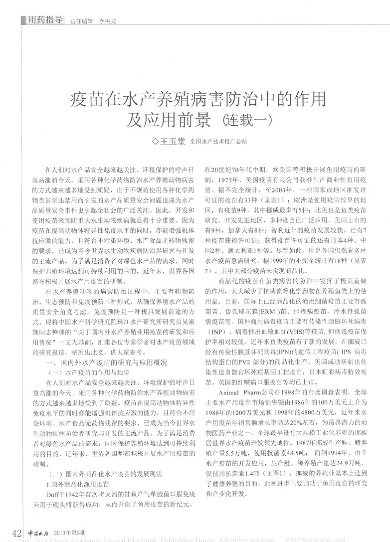 疫苗在水產(chǎn)養(yǎng)殖病害防治中的作用及應(yīng)用前景連載一