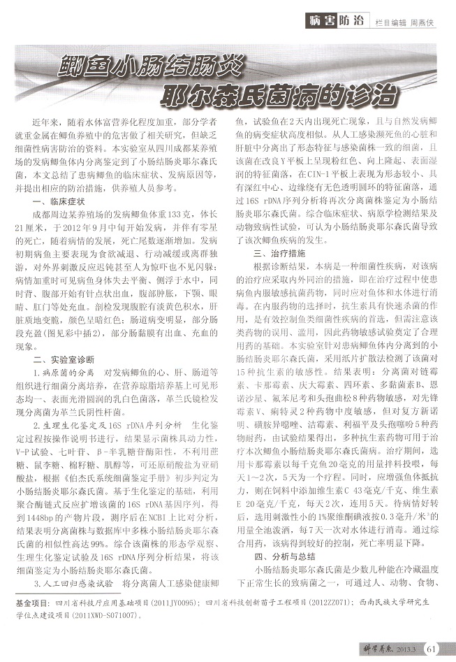 鯽魚小腸結(jié)腸炎耶爾森氏菌病的診治