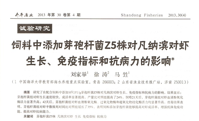 飼料中添加芽孢桿菌Z5株對凡納濱對蝦生長、免疫指標和抗病力的影響