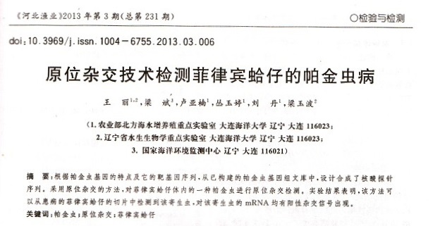 原位雜交技術(shù)檢測菲律賓蛤仔的帕金蟲病