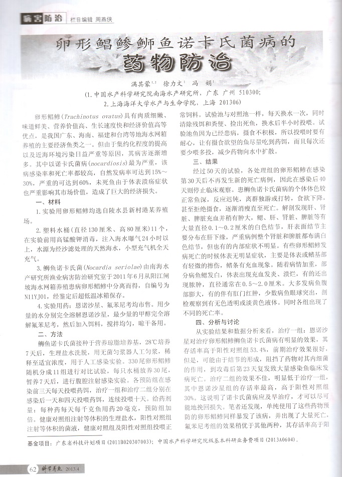 卵形鯧鲹鰤魚諾卡氏菌病的藥物防治
