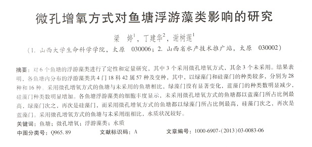 微孔增氧方式對魚塘浮游藻類影響的研究