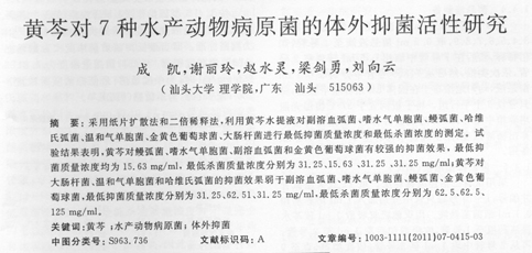 黃芩對7種水產(chǎn)動物病原菌的體外抑菌活性研究