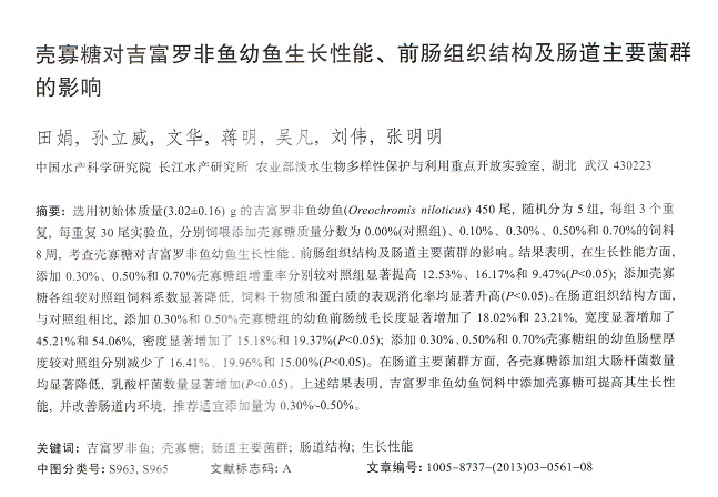 殼寡糖對吉富羅非魚幼魚生長性能、前腸組織結(jié)構(gòu)及腸道主要菌群的影響