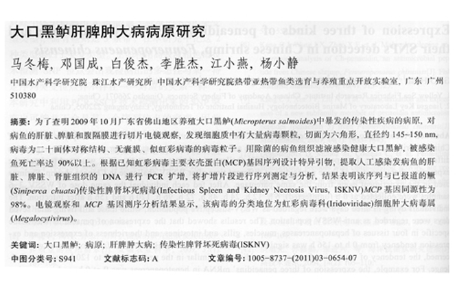 大口黑鱸肝脾腫大病病原研究