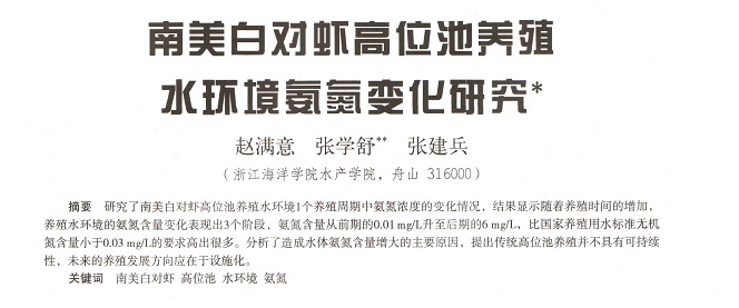 南美白對(duì)蝦高位池養(yǎng)殖水環(huán)境氨氮變化研究