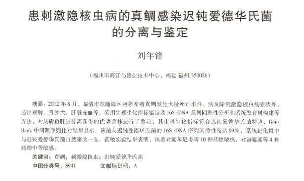 患刺激隱核蟲病的真鯛感染遲鈍愛華氏菌的分離與鑒定