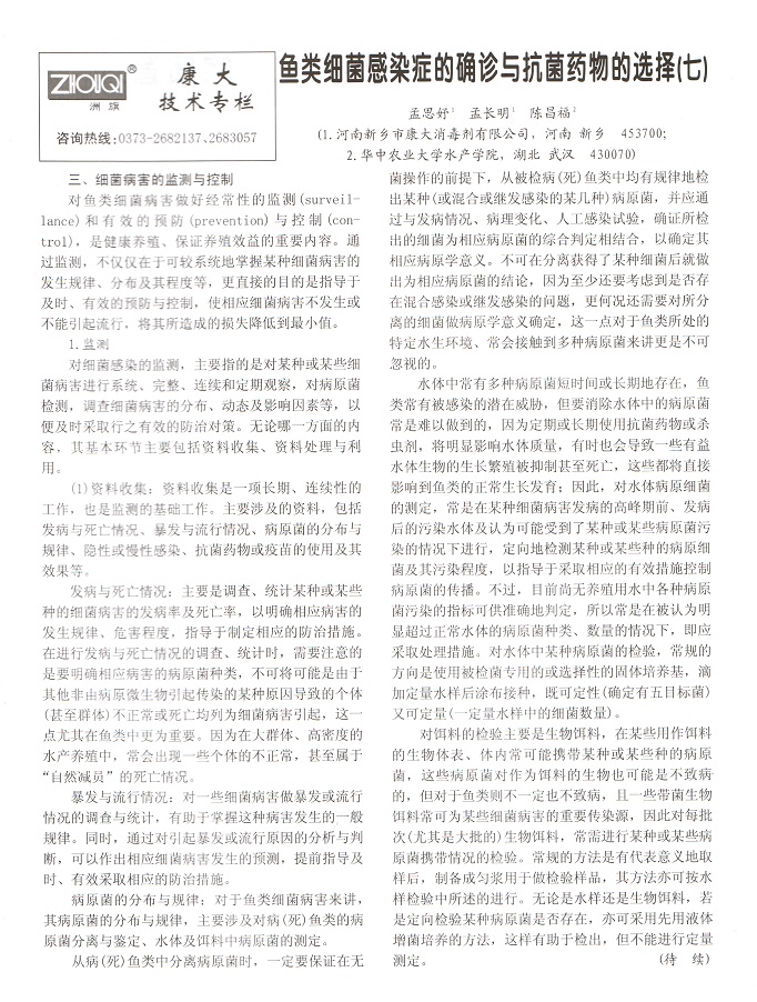 魚類細菌感染癥的確診與抗菌藥物的選擇(七)