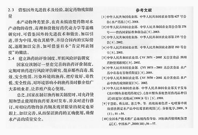 淺議我國(guó)漁藥休藥期及殘留基準(zhǔn)規(guī)定中的若干問題4