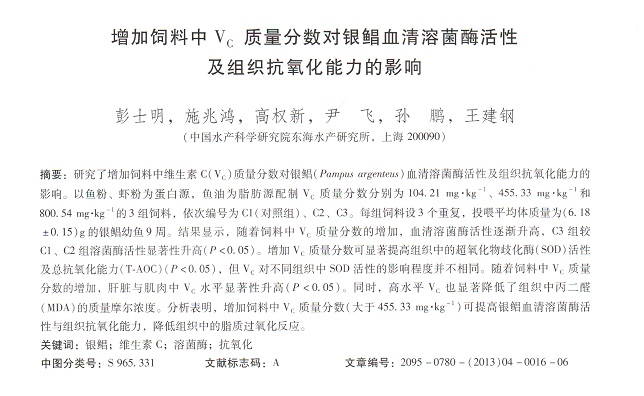 增加飼料中Vc質(zhì)量分?jǐn)?shù)對(duì)銀鯧血清溶菌酶活性及組織抗氧化能力的影響