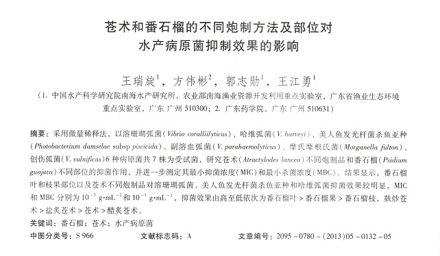 蒼術(shù)和番石榴的不同炮制方法及部位對(duì)水產(chǎn)病原菌抑制效果的影響