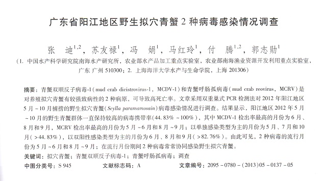 廣東省陽(yáng)江地區(qū)野生擬穴青蟹2種病毒感染情況調(diào)查