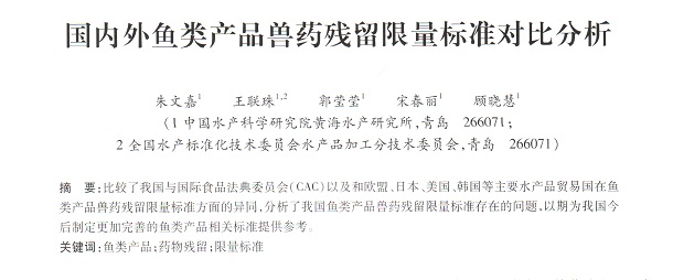 國(guó)內(nèi)外魚類產(chǎn)品獸藥殘留限量標(biāo)準(zhǔn)對(duì)比分析