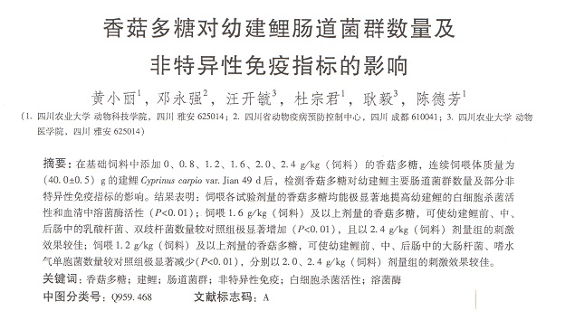 香菇多糖對幼建鯉腸道菌數(shù)量及非特異性免疫指標的影響