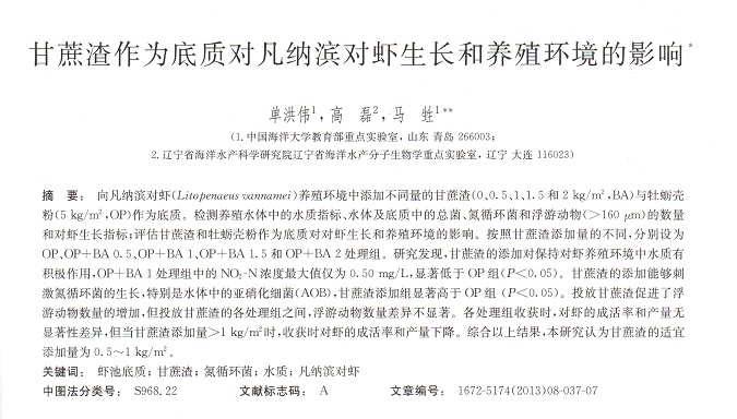 甘蔗渣作為底質(zhì)對(duì)凡納濱對(duì)蝦生長和養(yǎng)殖環(huán)境的影響
