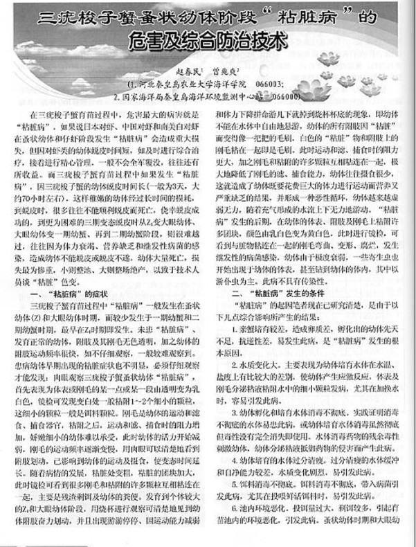 三疣梭子蟹蚤狀幼體階段“粘臟病”的危害及綜合防治技術(shù)1