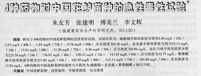 4種藥物對中國花鱸苗種的急性毒性實驗
