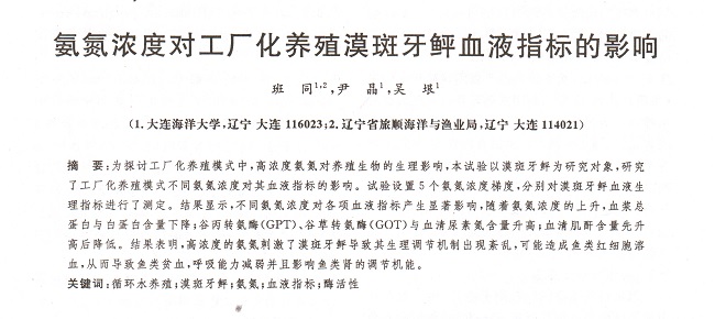 氨氮濃度對工廠化養(yǎng)殖漠斑牙鲆血液指標的影響