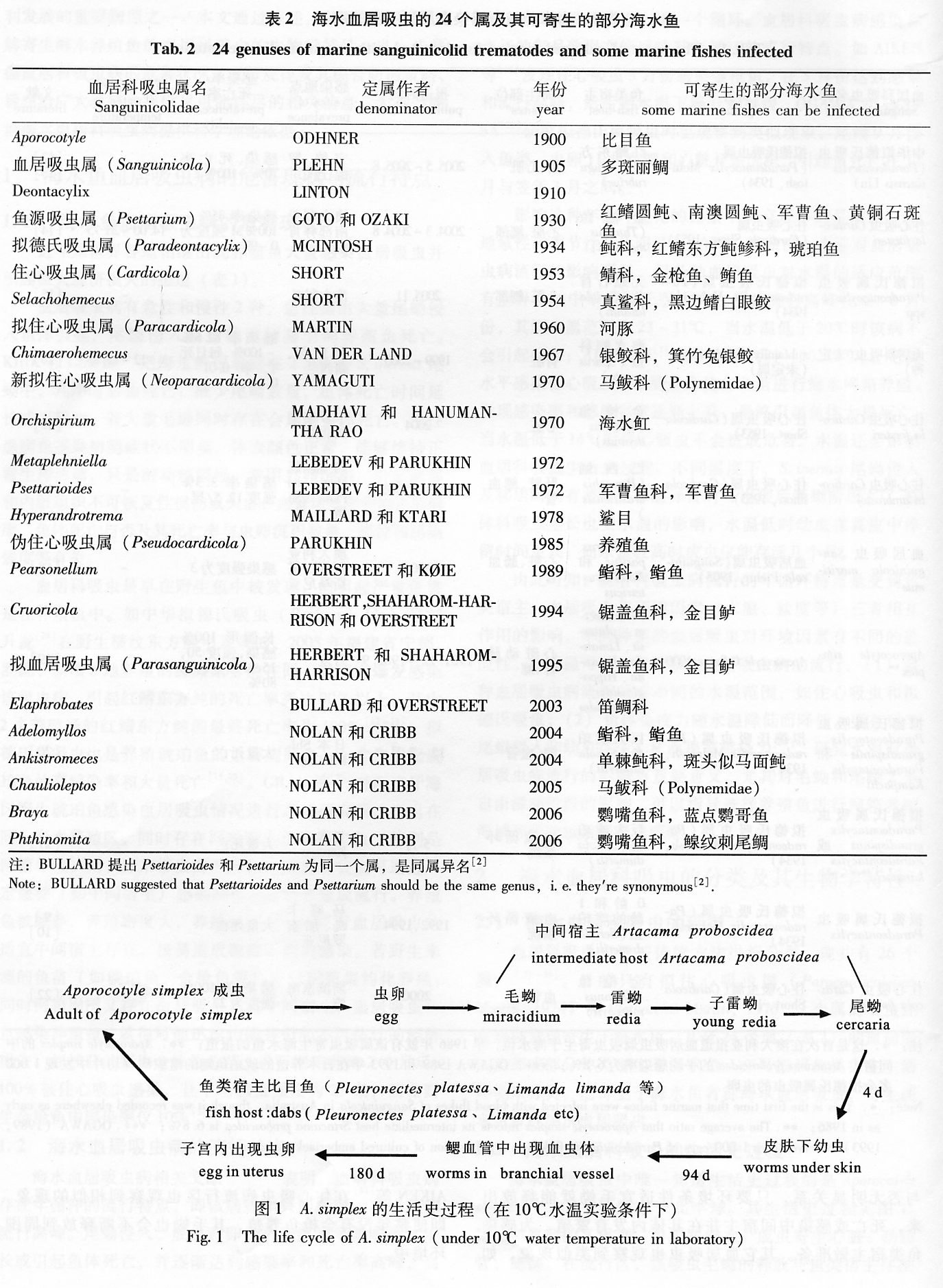 海水魚血居科Sanguinicolidae吸蟲病的研究現(xiàn)狀4