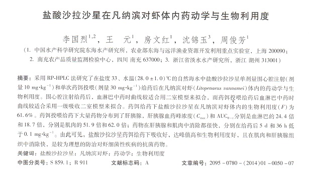 鹽酸沙拉沙星在凡納濱對蝦體內(nèi)藥動學(xué)與生物利用度