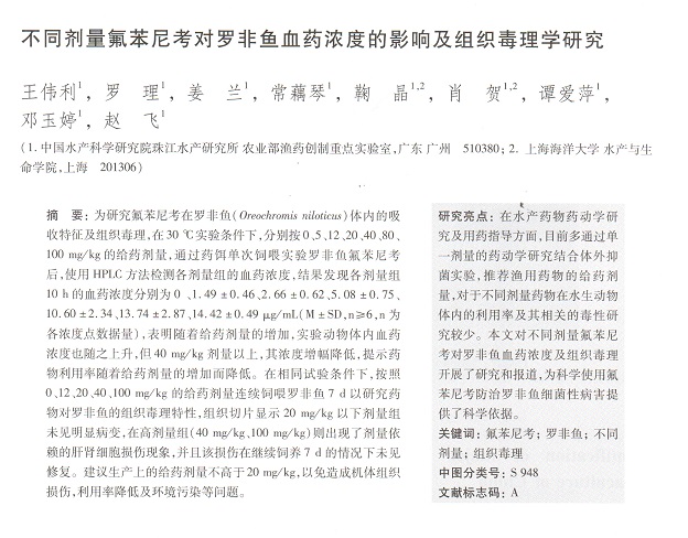 不同劑量氟苯尼考對(duì)羅非魚血藥濃度的影響及組織毒理學(xué)研究