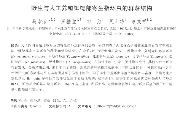 野生與人工養(yǎng)殖鯽鰓部寄生指環(huán)蟲的群落結(jié)構(gòu)