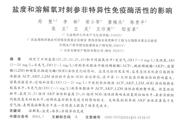 鹽度和溶解氧對刺參非特異性免疫酶活性的影響
