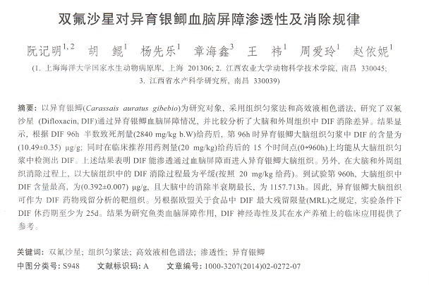 雙氟沙星對異育銀鯽血腦屏障滲透性及消除規(guī)律